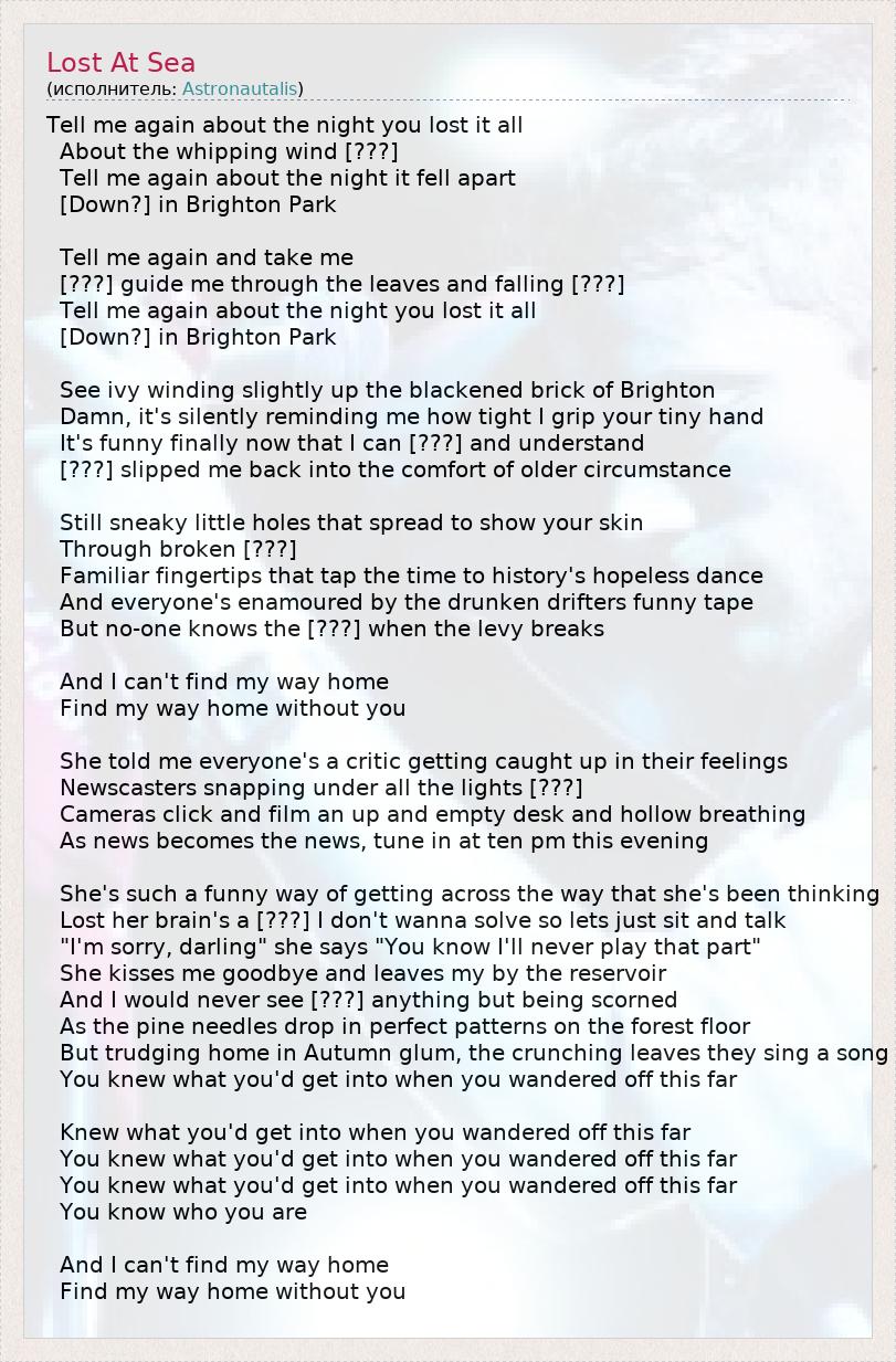 А как ты думаешь, о чем песня "Lost At Sea" ?