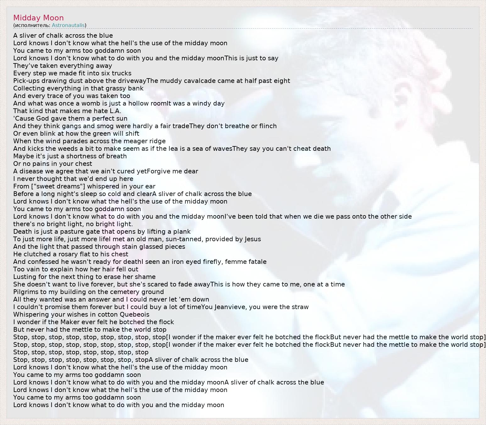 А как ты думаешь, о чем песня "Midday Moon" ?