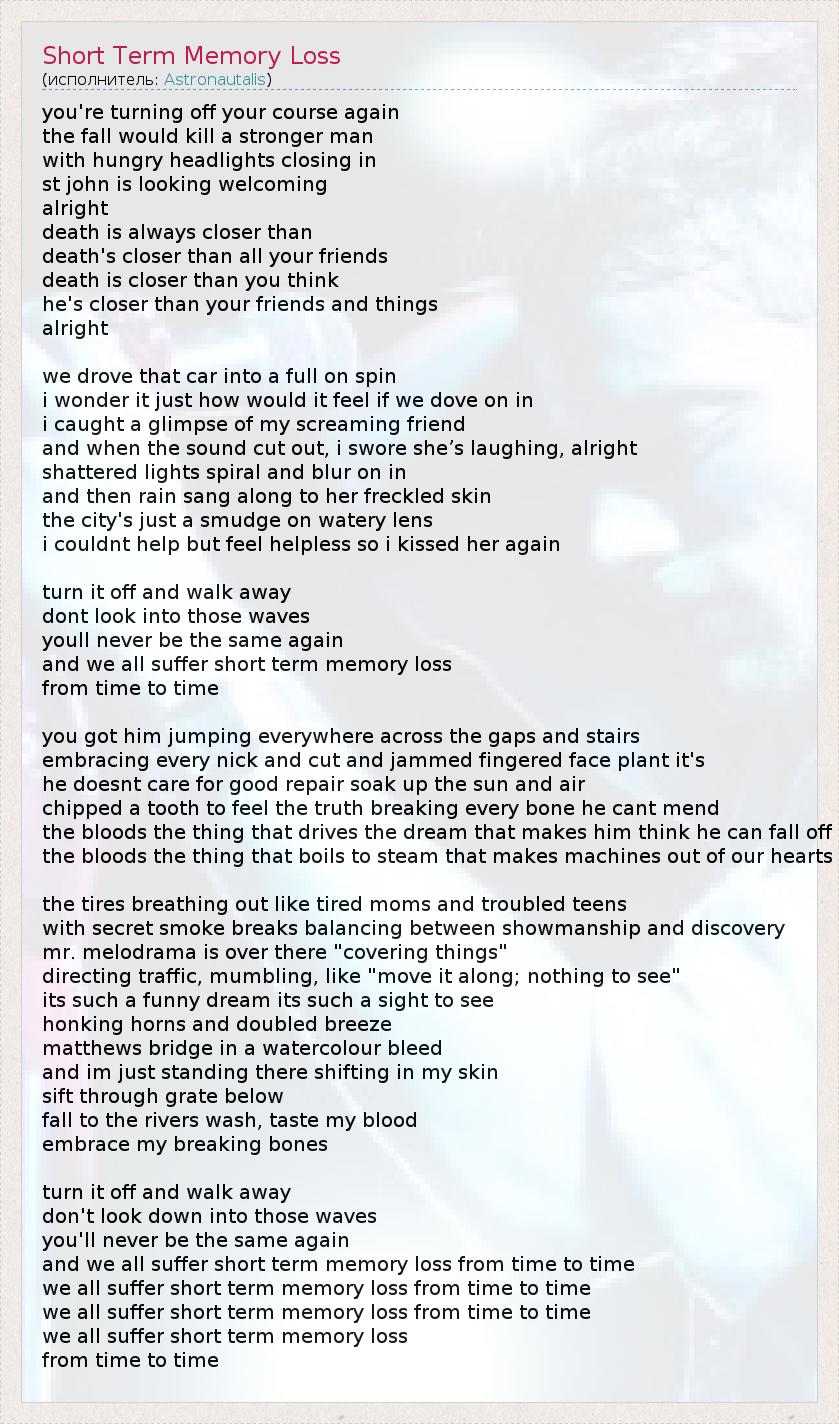 А как ты думаешь, о чем песня "Short Term Memory Loss" ?