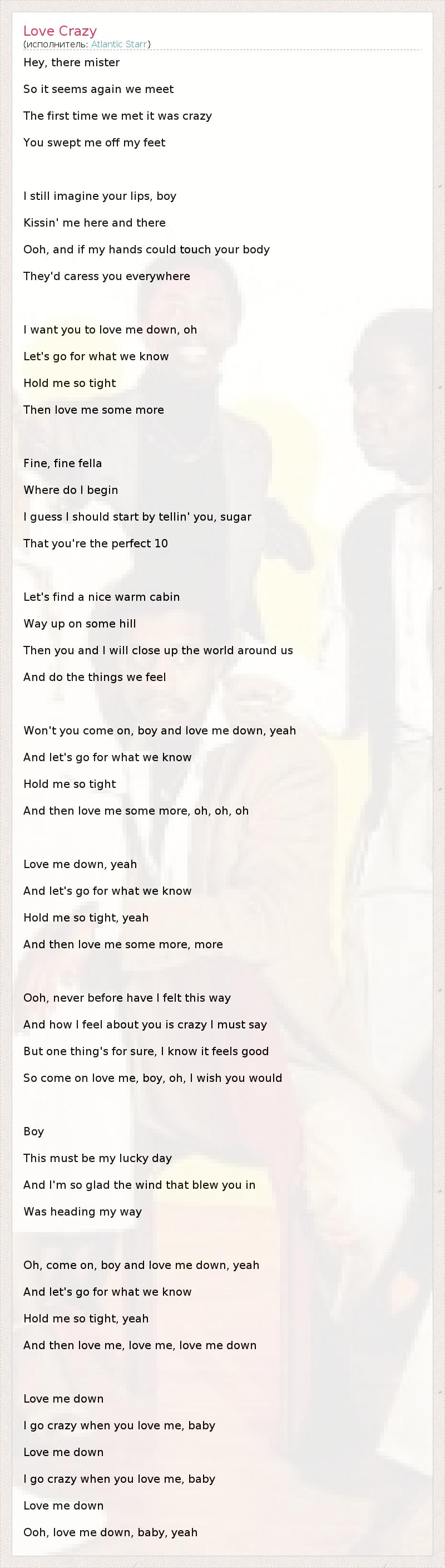 А как ты думаешь, о чем песня "Love Crazy" ?