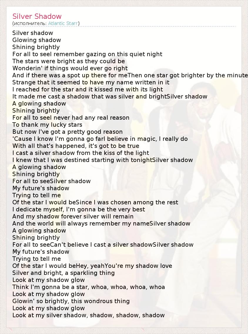 А как ты думаешь, о чем песня "Silver Shadow" ?