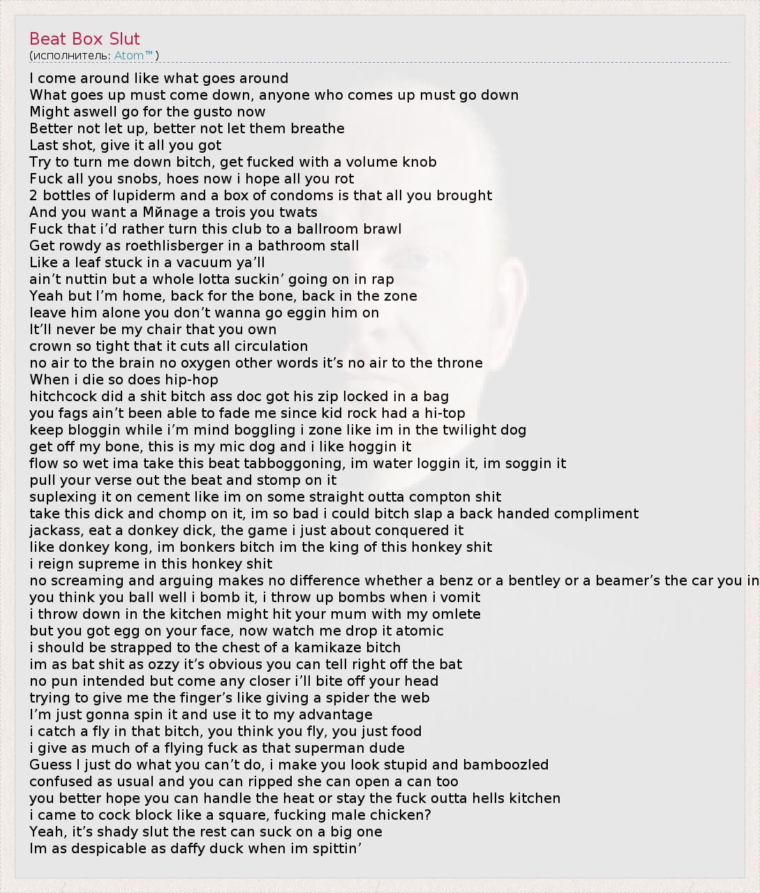 А как ты думаешь, о чем песня "Beat Box Slut" ?