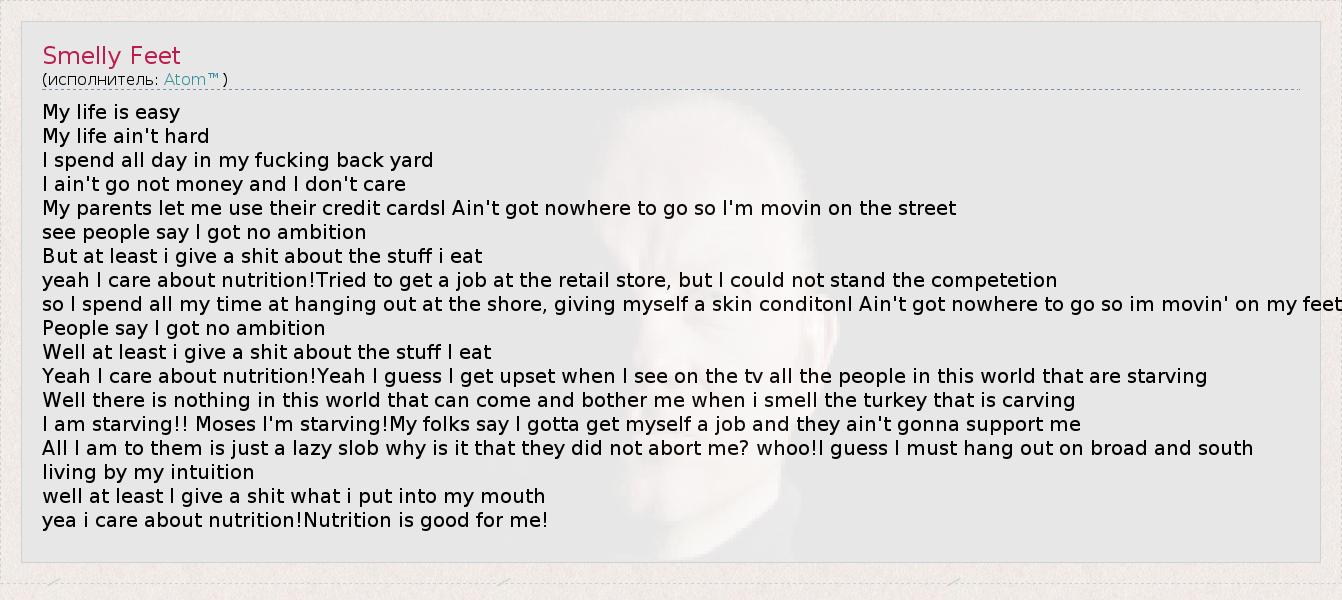 А как ты думаешь, о чем песня "Smelly Feet" ?