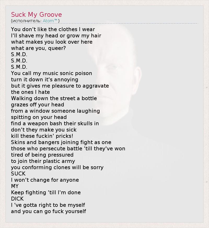А как ты думаешь, о чем песня "Suck My Groove" ?