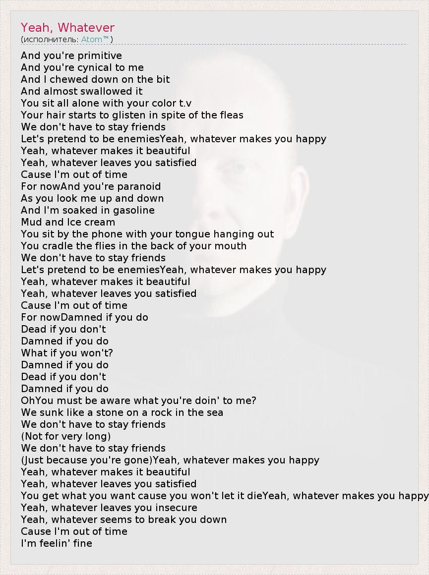 А как ты думаешь, о чем песня "Yeah, Whatever" ?