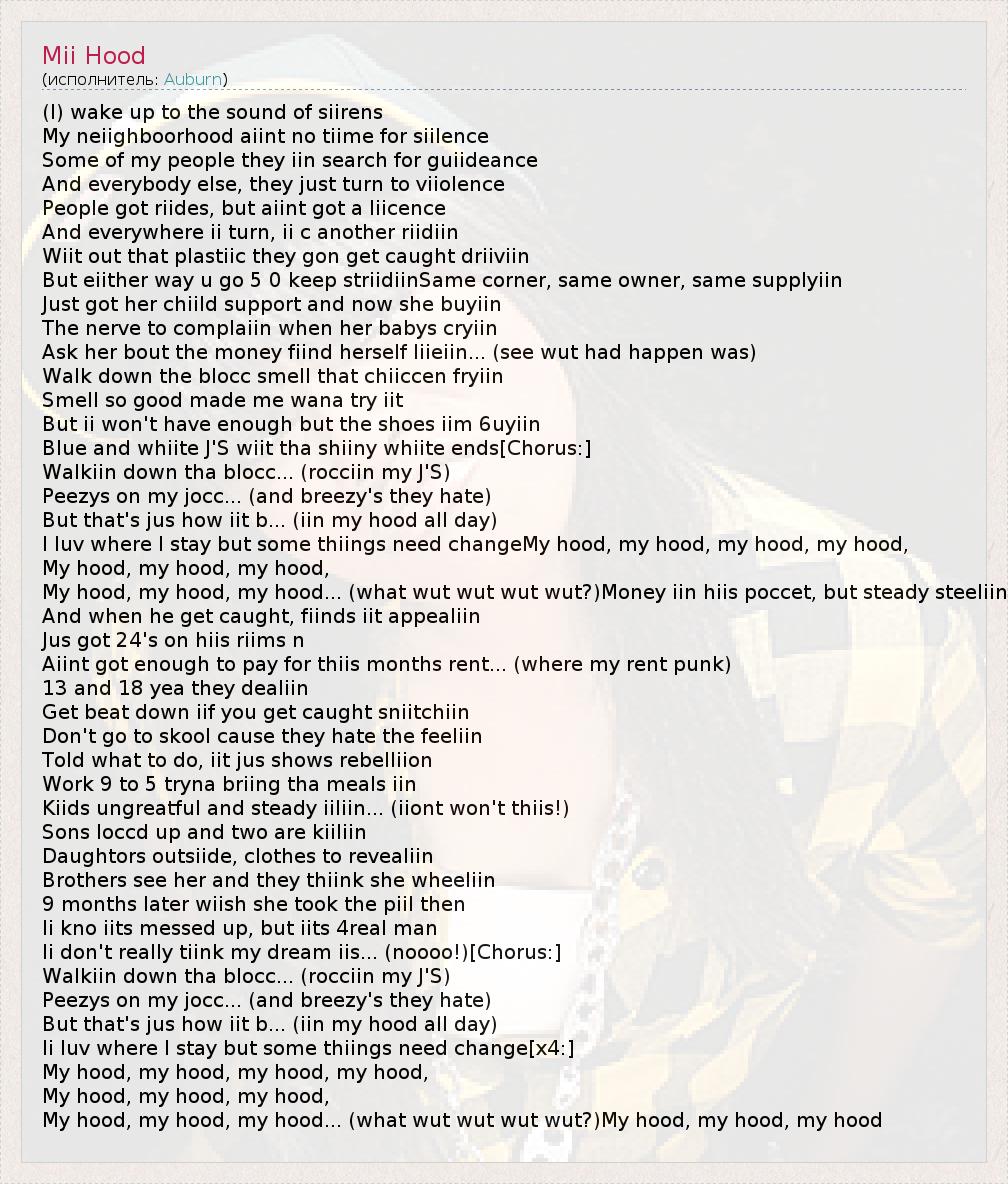 А как ты думаешь, о чем песня "Mii Hood" ?