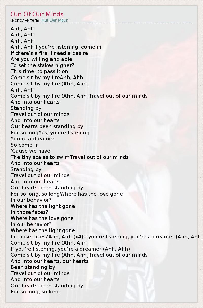 А как ты думаешь, о чем песня "Out Of Our Minds" ?