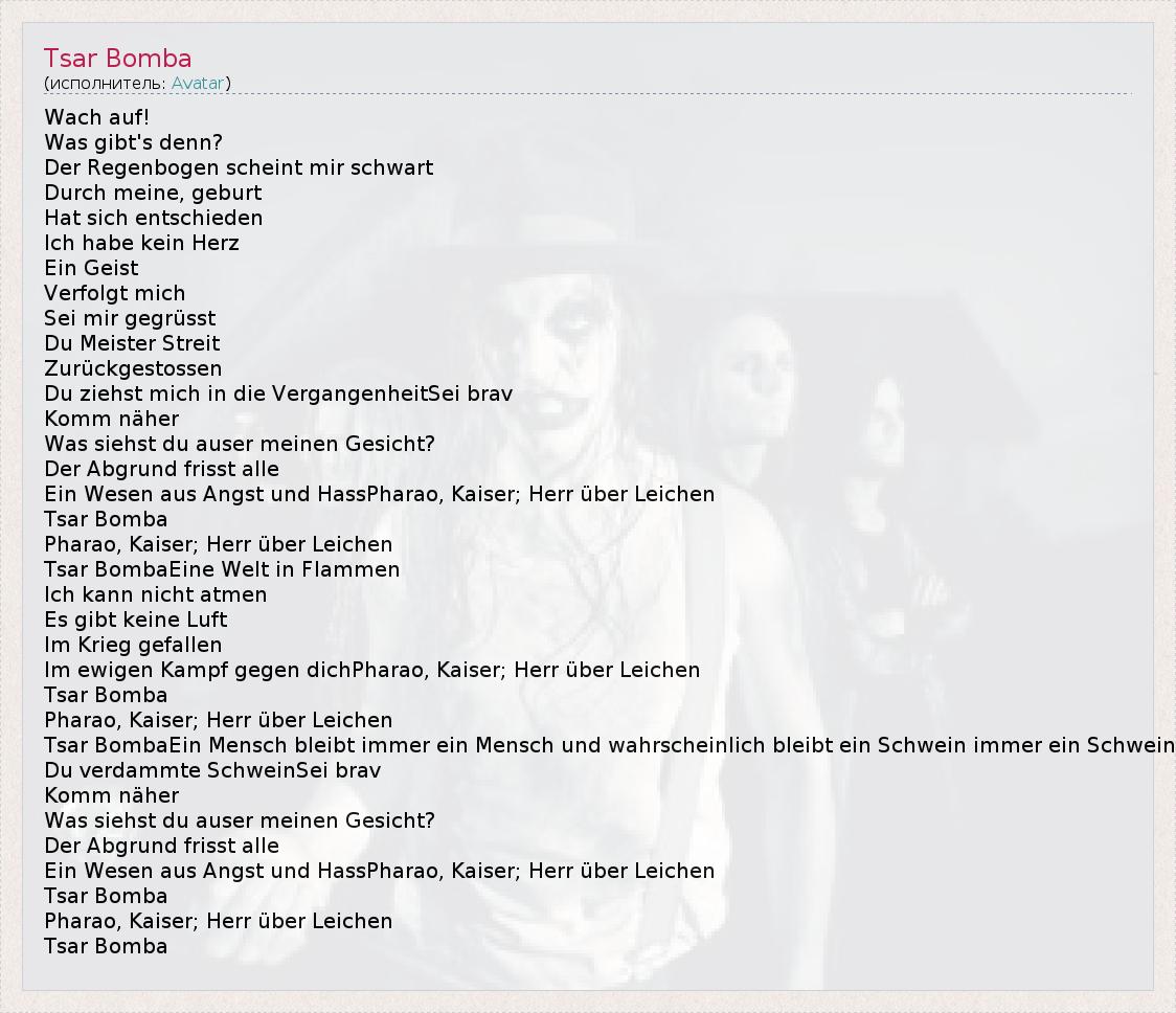 А как ты думаешь, о чем песня "Tsar Bomba" ?