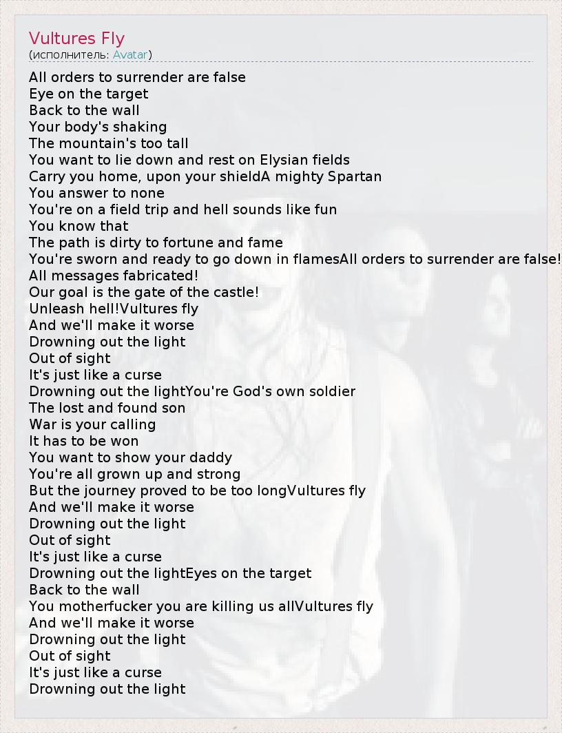 А как ты думаешь, о чем песня "Vultures Fly" ?