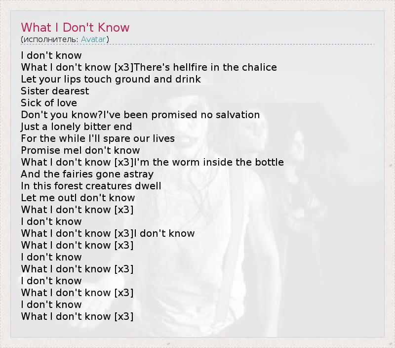 А как ты думаешь, о чем песня "What I Don't Know" ?
