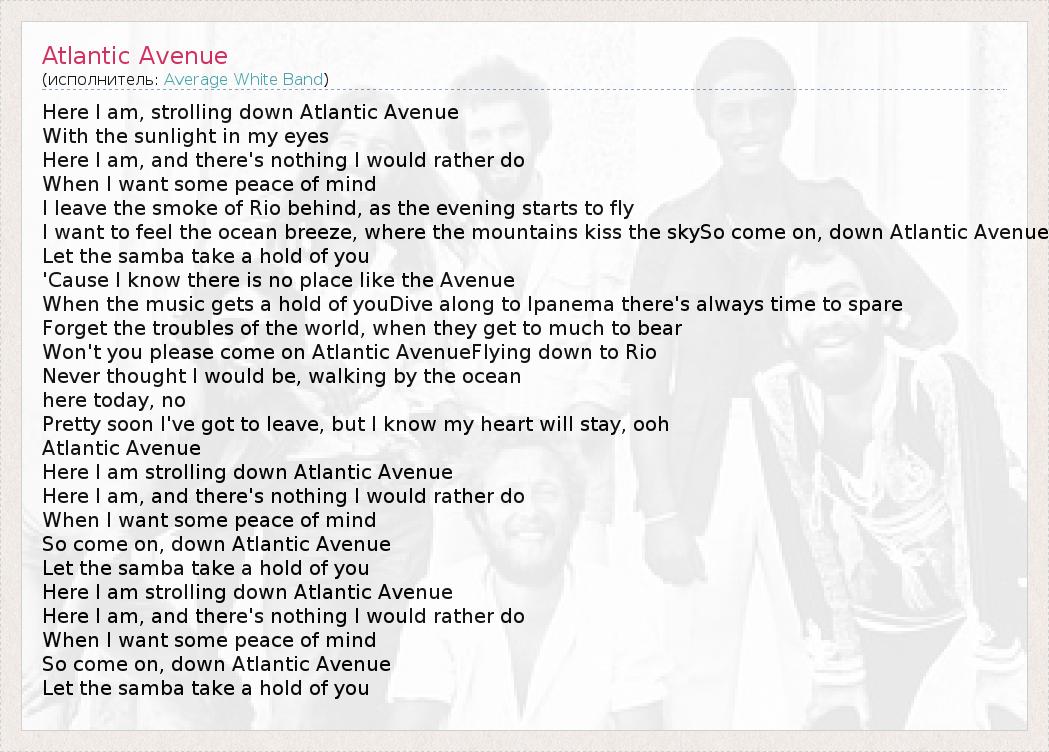 А как ты думаешь, о чем песня "Atlantic Avenue" ?