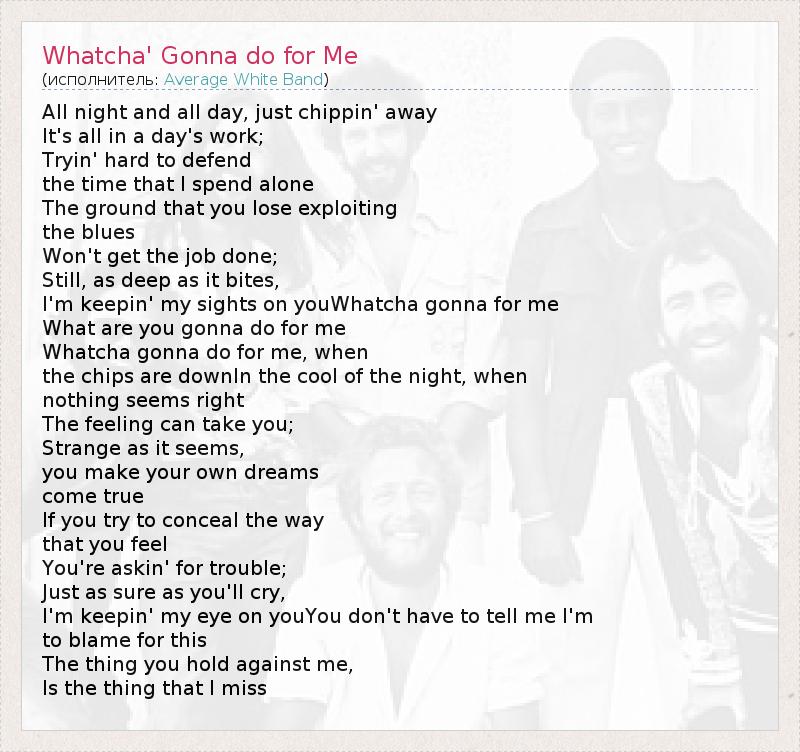 А как ты думаешь, о чем песня "Whatcha' Gonna do for Me" ?
