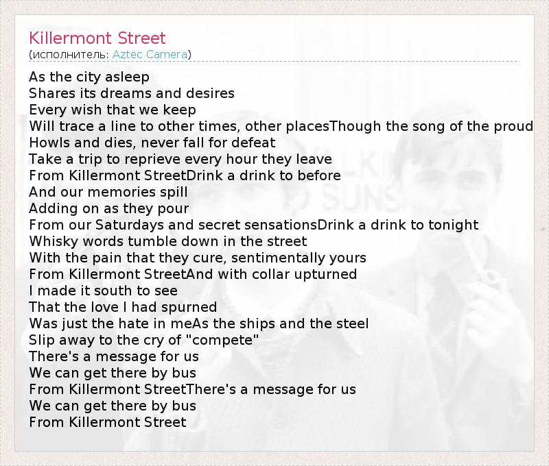 А как ты думаешь, о чем песня "Killermont Street" ?