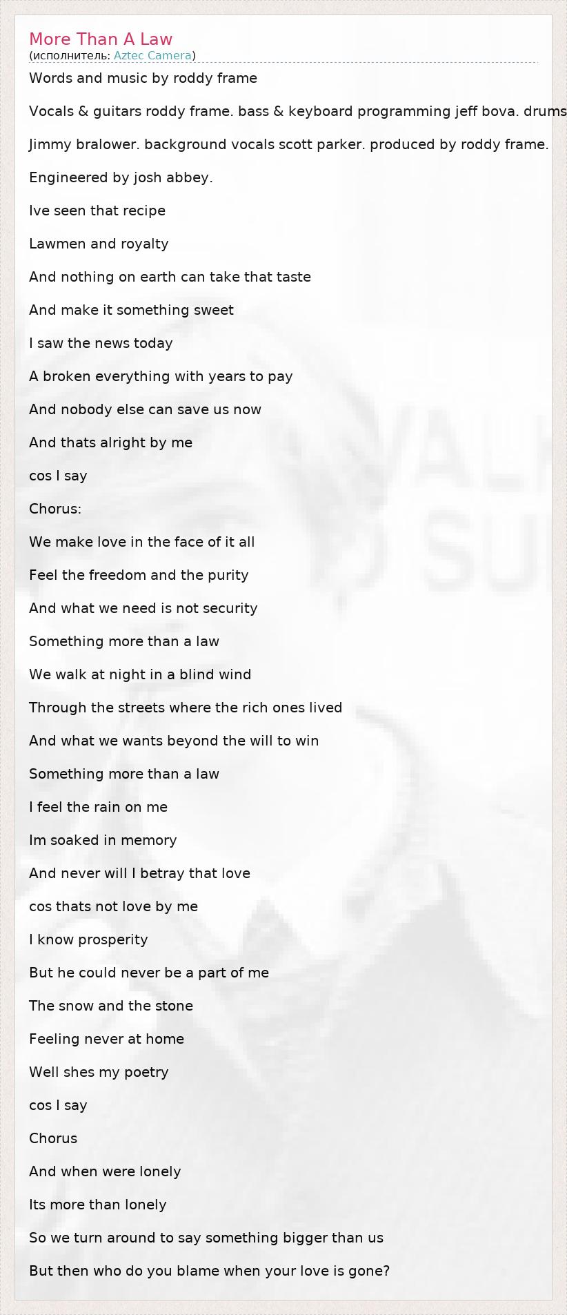 А как ты думаешь, о чем песня "More Than A Law" ?