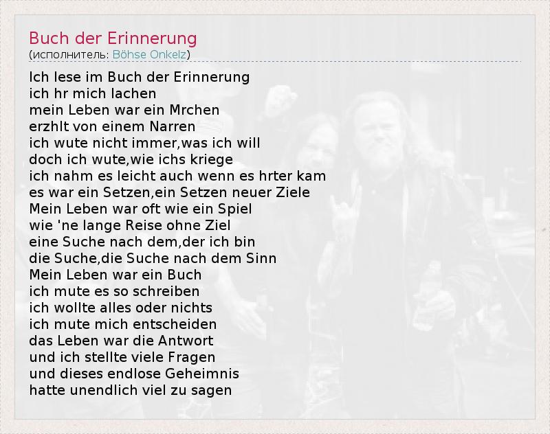 А как ты думаешь, о чем песня "Buch der Erinnerung" ?