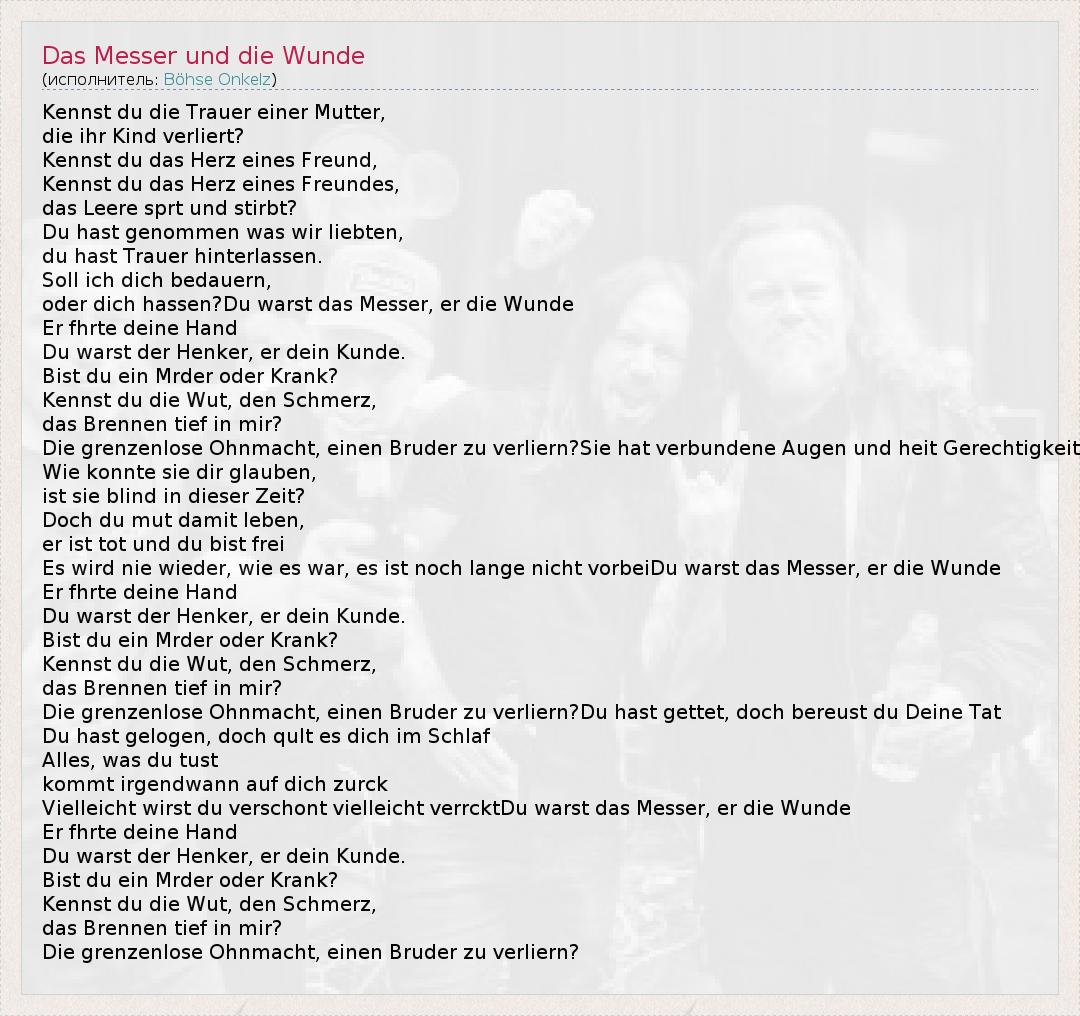 А как ты думаешь, о чем песня "Das Messer und die Wunde" ?