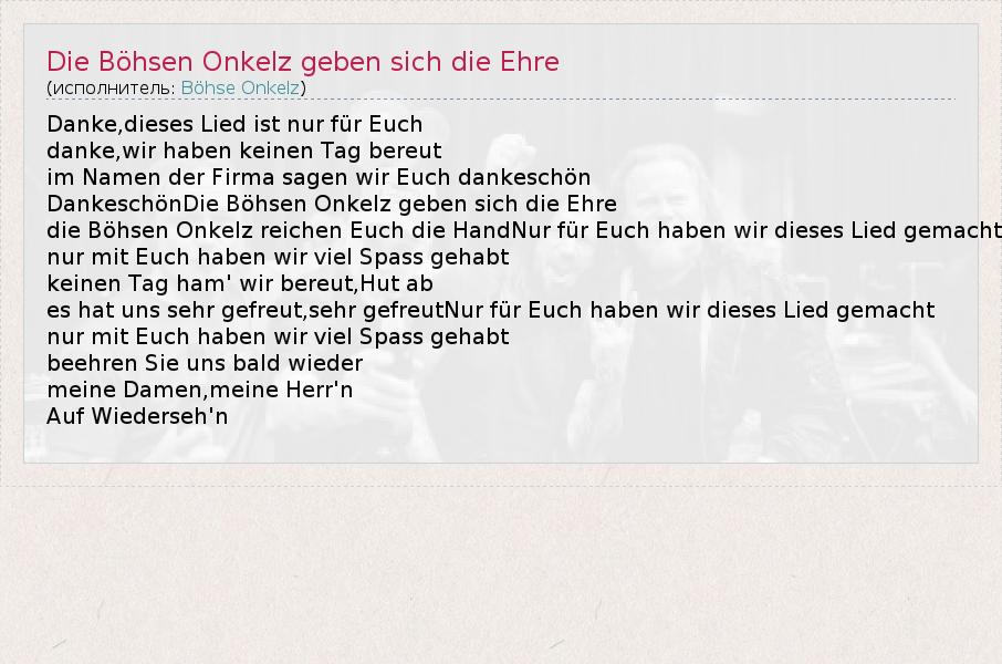 А как ты думаешь, о чем песня "Die Böhsen Onkelz geben sich die Ehre" ?