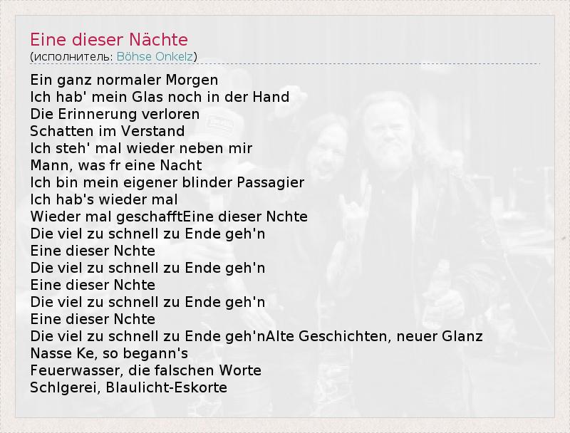 А как ты думаешь, о чем песня "Eine dieser Nächte" ?