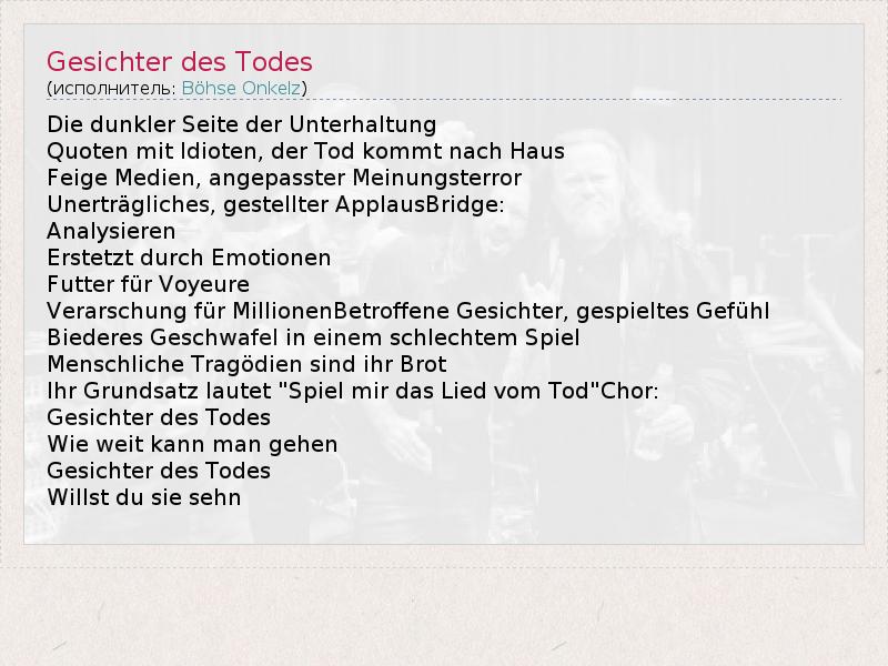 А как ты думаешь, о чем песня "Gesichter des Todes" ?