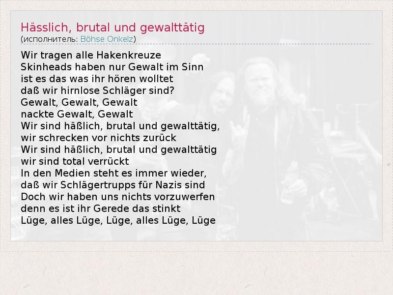 А как ты думаешь, о чем песня "Hässlich, brutal und gewalttätig" ?