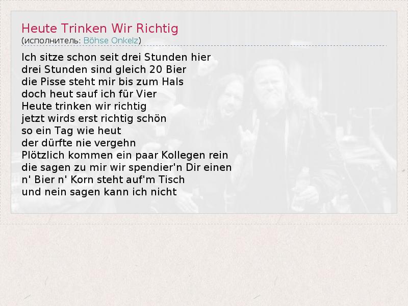 А как ты думаешь, о чем песня "Heute Trinken Wir Richtig" ?