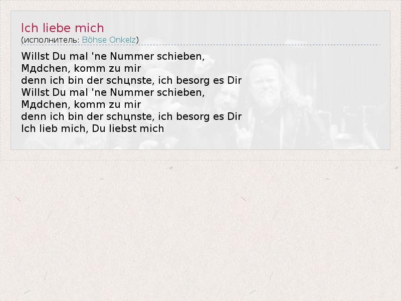 А как ты думаешь, о чем песня "Ich liebe mich" ?
