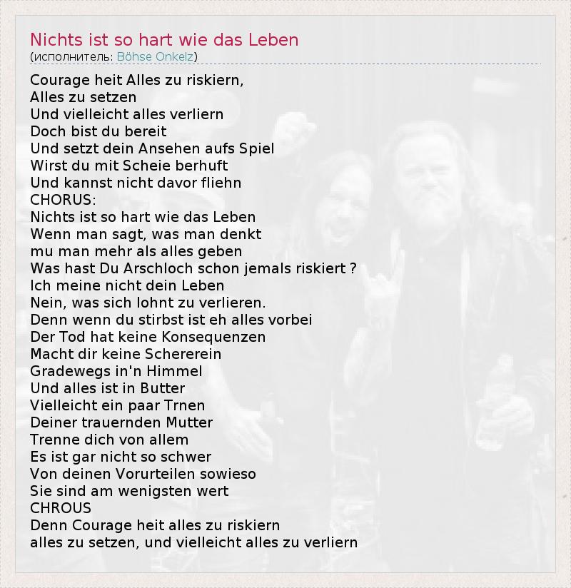 А как ты думаешь, о чем песня "Nichts ist so hart wie das Leben" ?