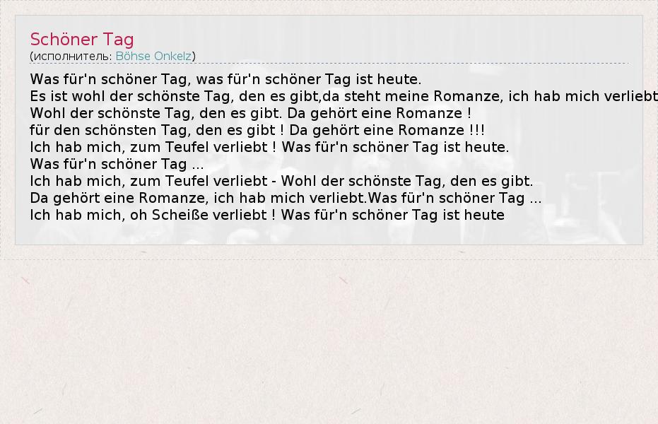 А как ты думаешь, о чем песня "Schöner Tag" ?