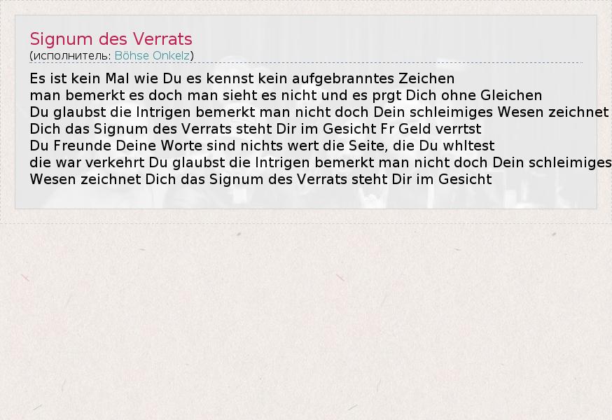 А как ты думаешь, о чем песня "Signum des Verrats" ?