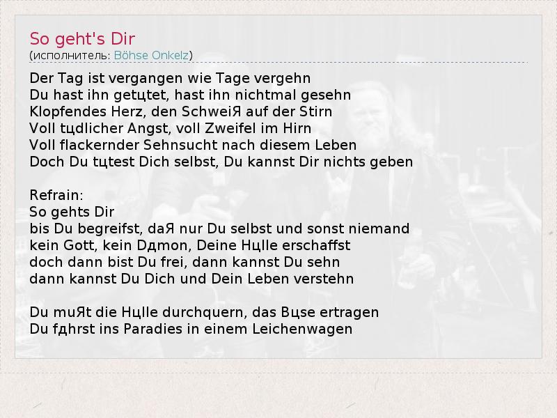 А как ты думаешь, о чем песня "So geht's Dir" ?
