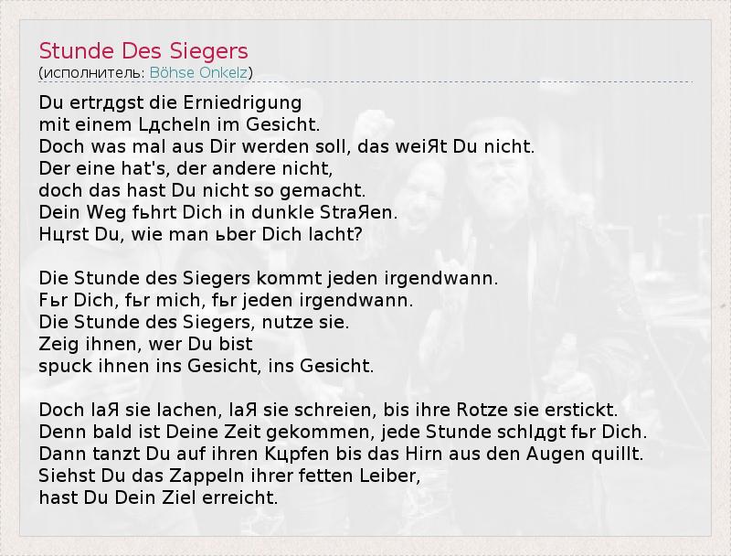 А как ты думаешь, о чем песня "Stunde Des Siegers" ?