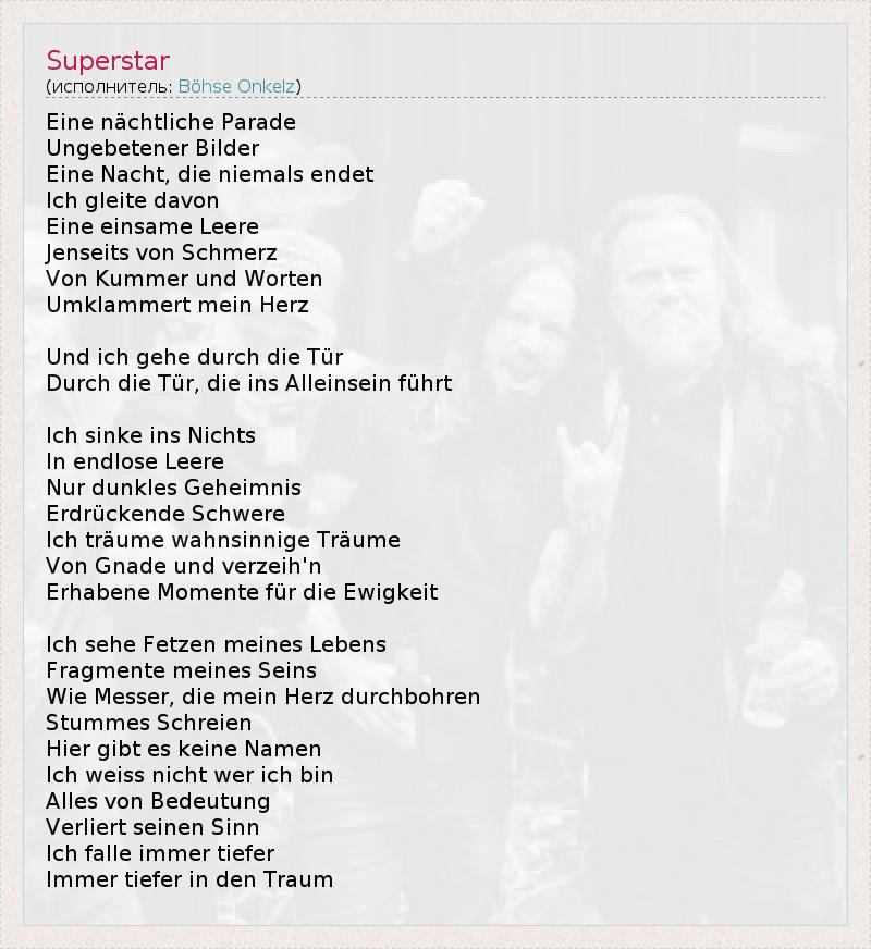 Это интересно:Группа "Bohse Onkelz" была образована в ноябре 1980 года тремя молодыми людьми из немецкого городка Хосбах. Звали этих чуваков Стефан Вейднер, Кевин Расселл и Петер Шоровски, а поводом для создания своей команды послужило их увлечение "Sex Pistols", "Clash", "Stranglers" и "Sham 69". Деятельность коллектива началась со скандала, поскольку из-за одной из первых песен, "Turken Raus" ("Турки... продолжение