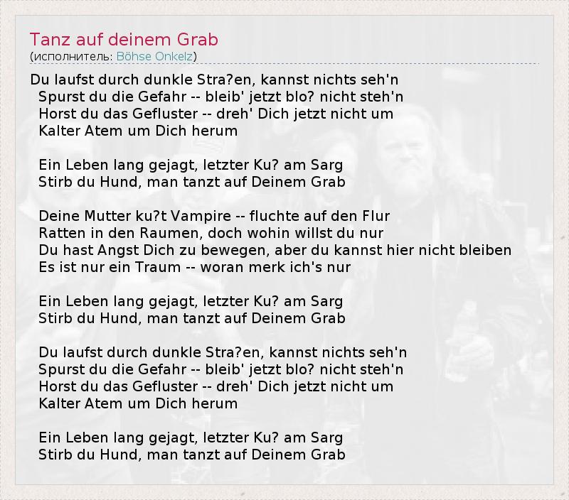 А как ты думаешь, о чем песня "Tanz auf deinem Grab" ?