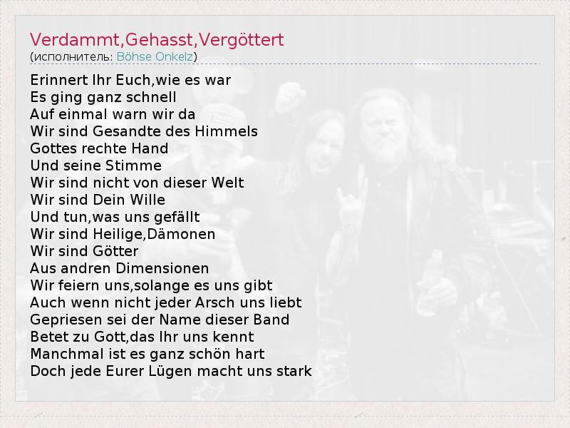 А как ты думаешь, о чем песня "Verdammt,Gehasst,Vergöttert" ?