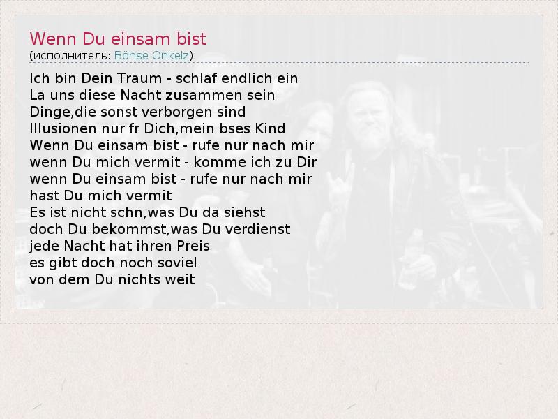 А как ты думаешь, о чем песня "Wenn Du einsam bist" ?