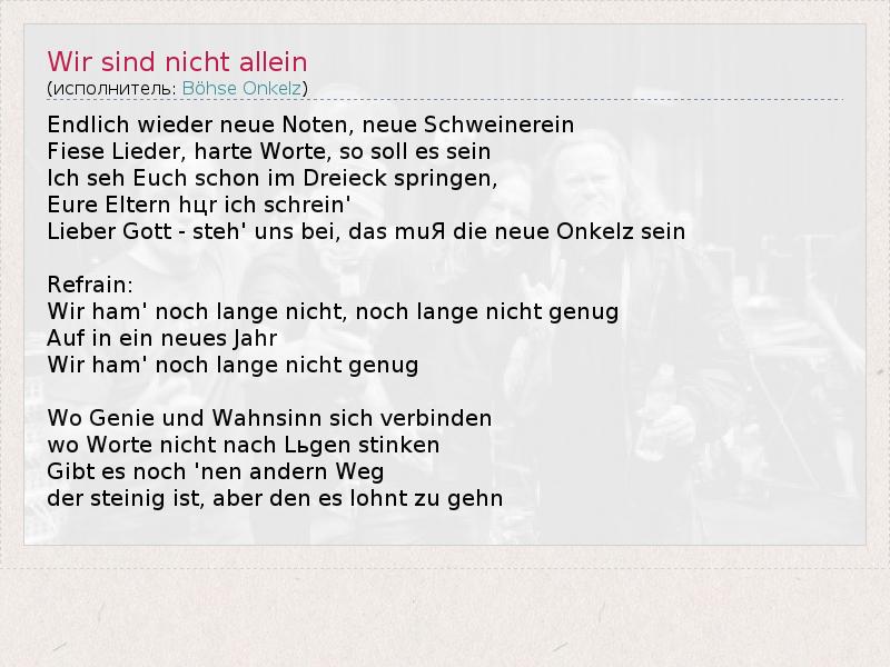 А как ты думаешь, о чем песня "Wir sind nicht allein" ?