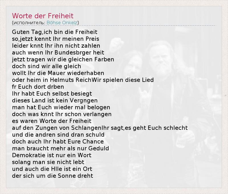 А как ты думаешь, о чем песня "Worte der Freiheit" ?