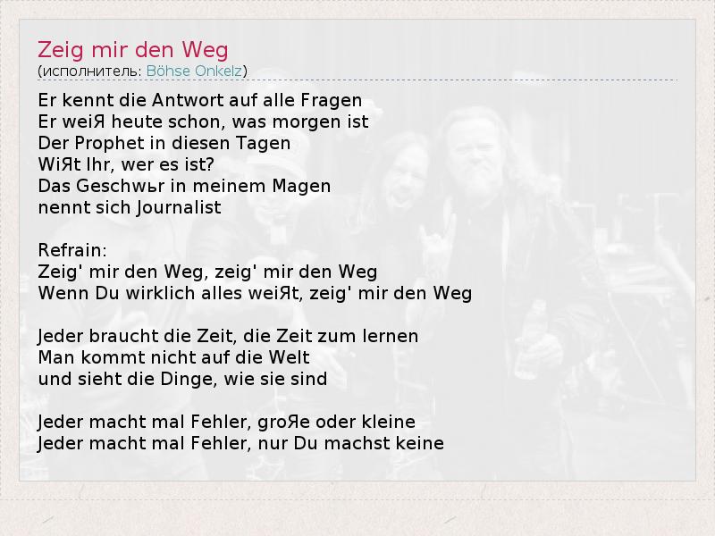 А как ты думаешь, о чем песня "Zeig mir den Weg" ?