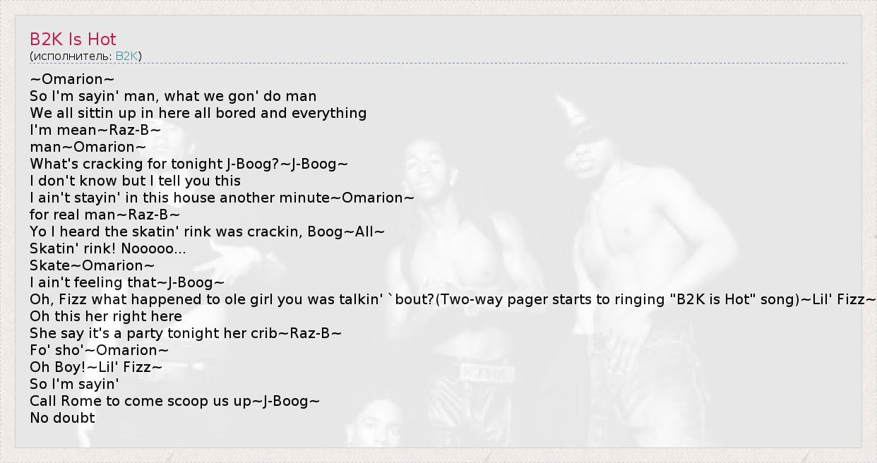 А как ты думаешь, о чем песня "B2K Is Hot" ?