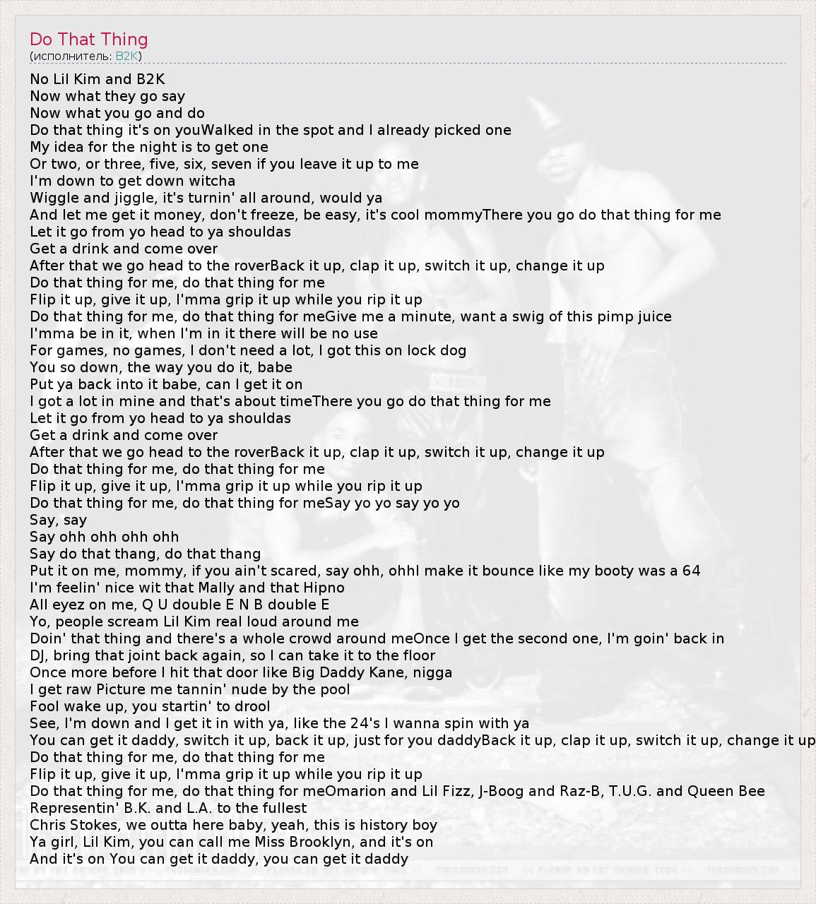А как ты думаешь, о чем песня "Do That Thing" ?