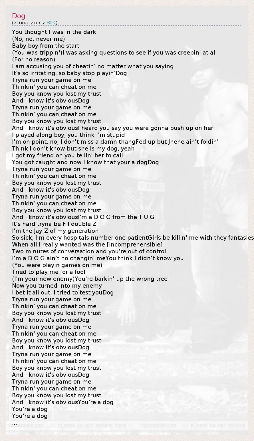 I'm a D O G ain't no changin' meYou think I didn't know you