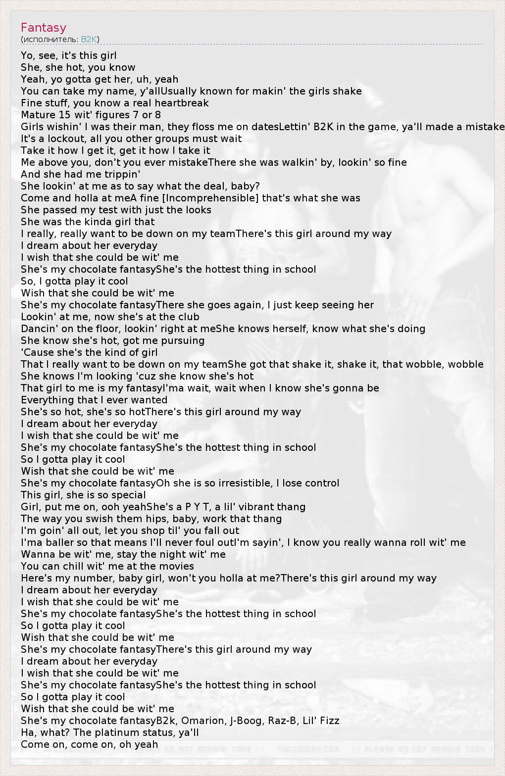 She's my chocolate fantasyB2k, Omarion, J-Boog, Raz-B, Lil' Fizz