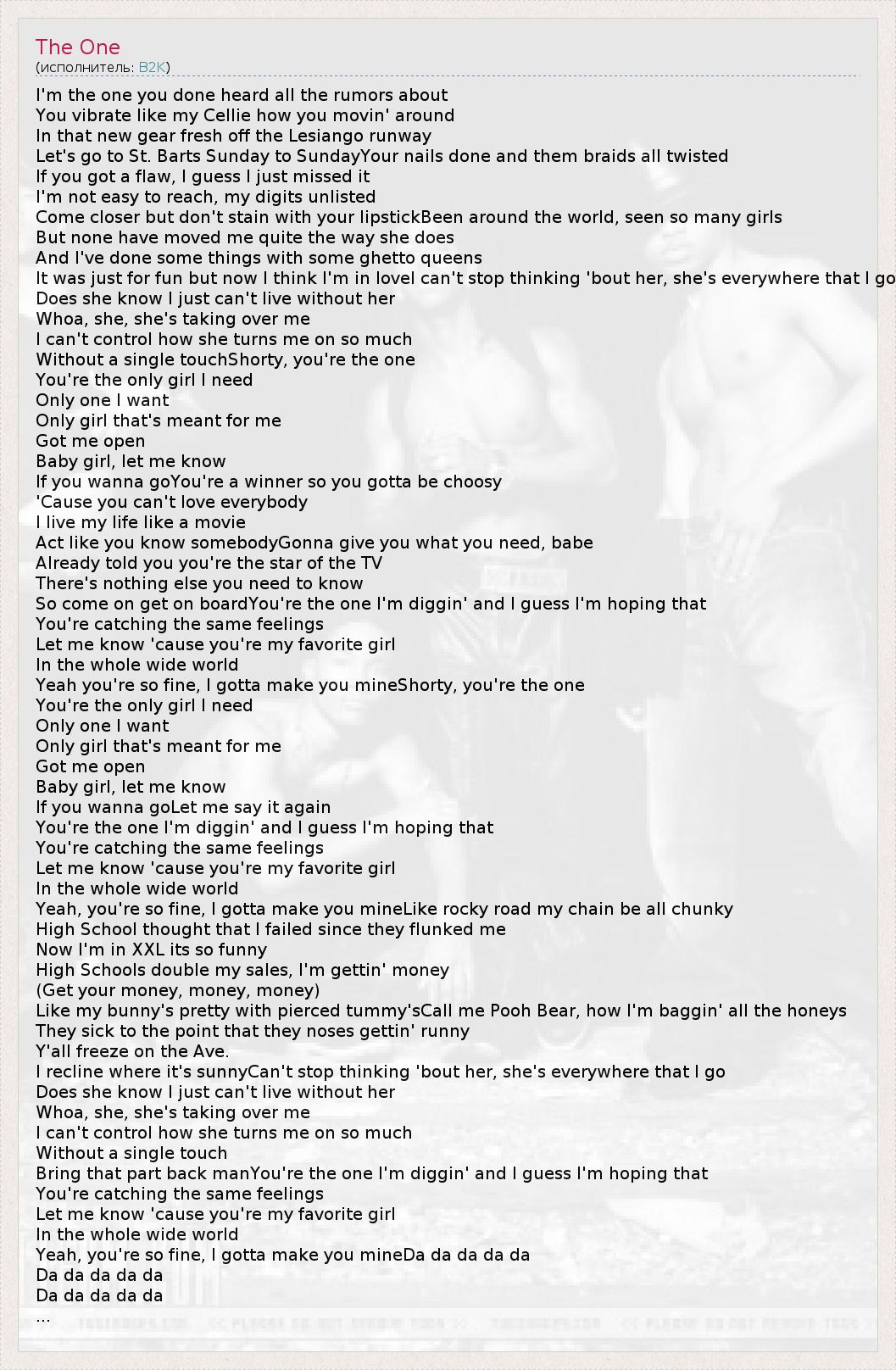 А как ты думаешь, о чем песня "The One" ?