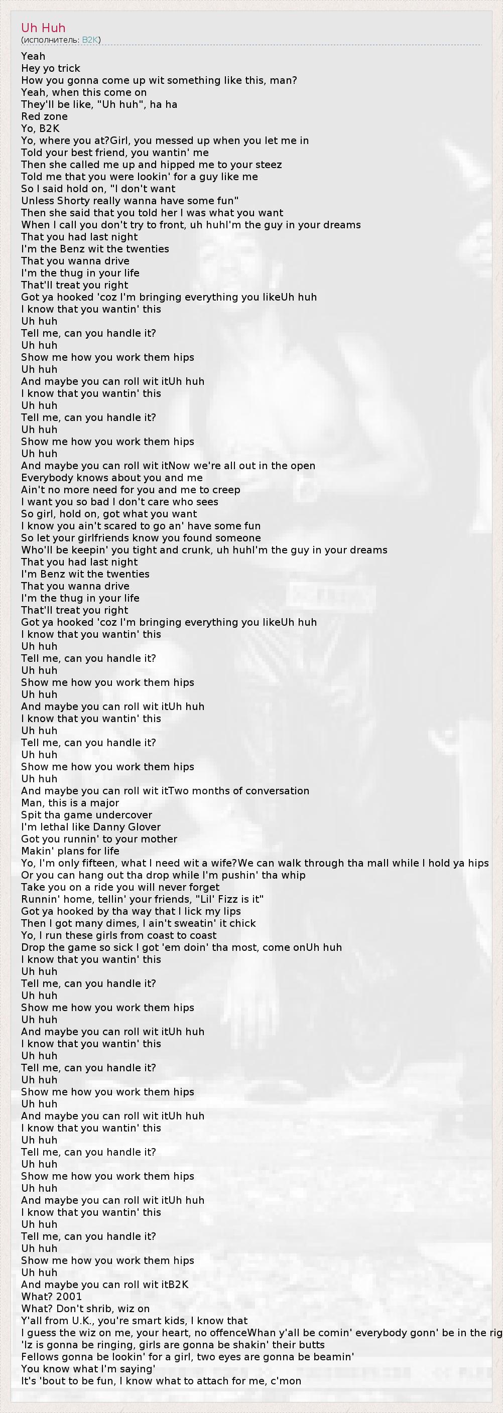 А как ты думаешь, о чем песня "Uh Huh" ?