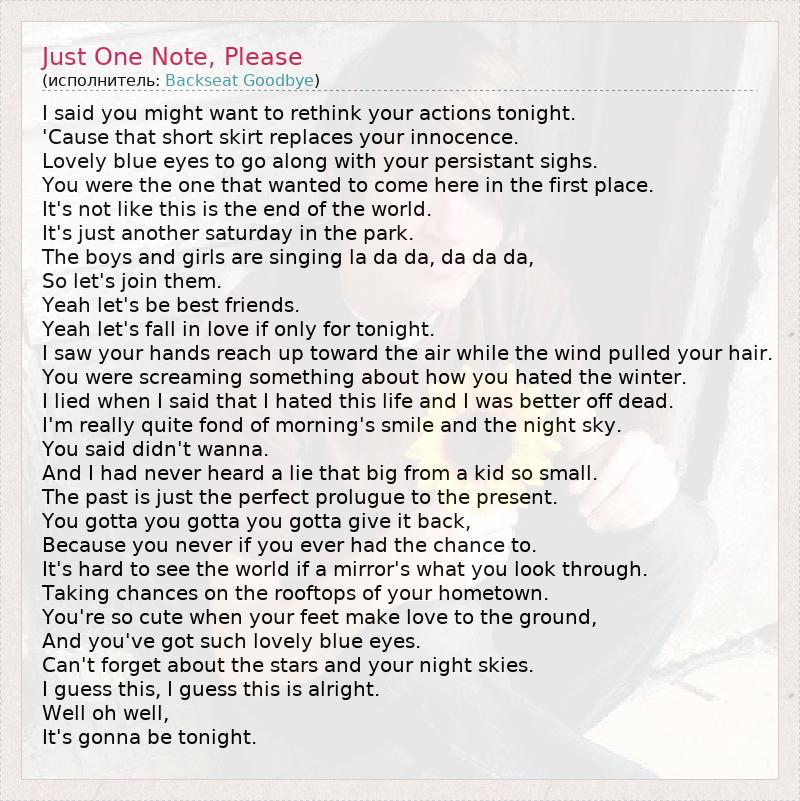 А как ты думаешь, о чем песня "Just One Note, Please" ?