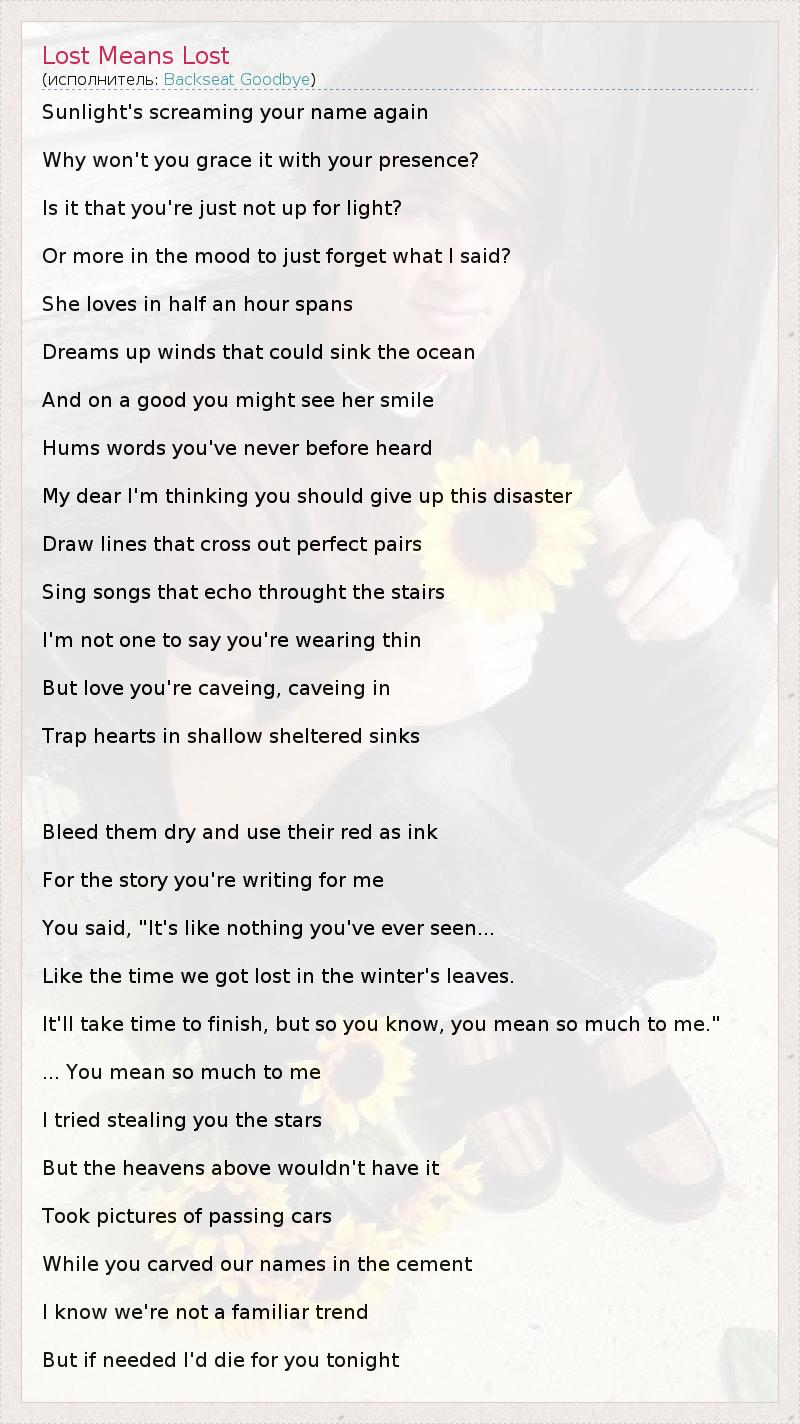 А как ты думаешь, о чем песня "Lost Means Lost" ?