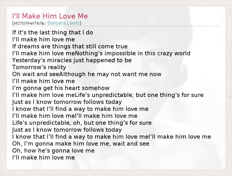 А как ты думаешь, о чем песня "I'll Make Him Love Me" ?