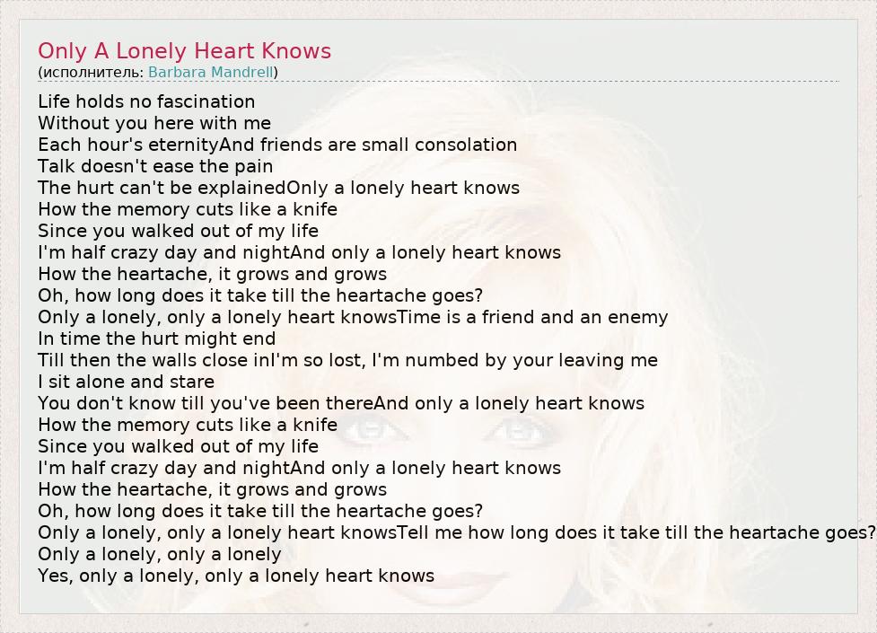 А как ты думаешь, о чем песня "Only A Lonely Heart Knows" ?
