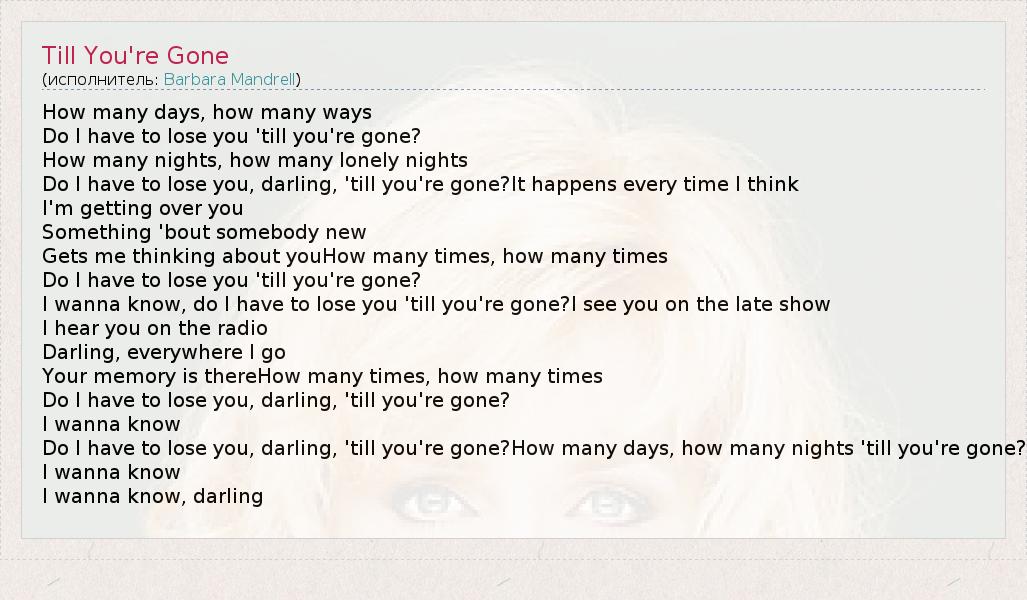 А как ты думаешь, о чем песня "Till You're Gone" ?