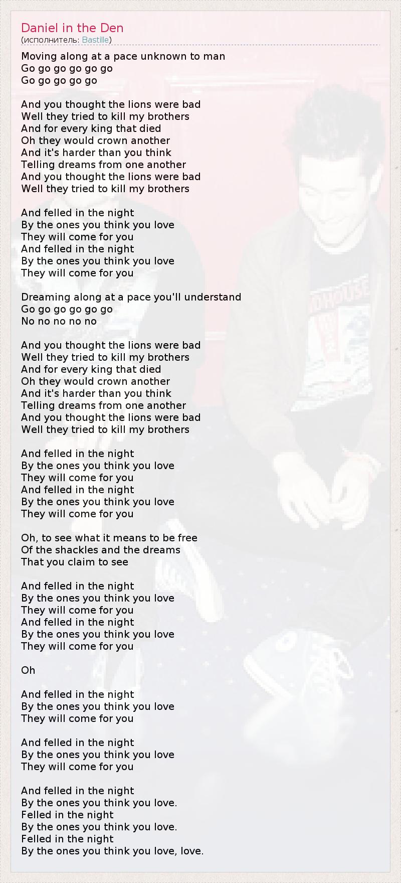 А как ты думаешь, о чем песня "Daniel in the Den" ?